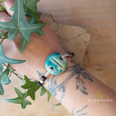 Pièce en grès cuit façon raku avec enfumage. Pièce unique.