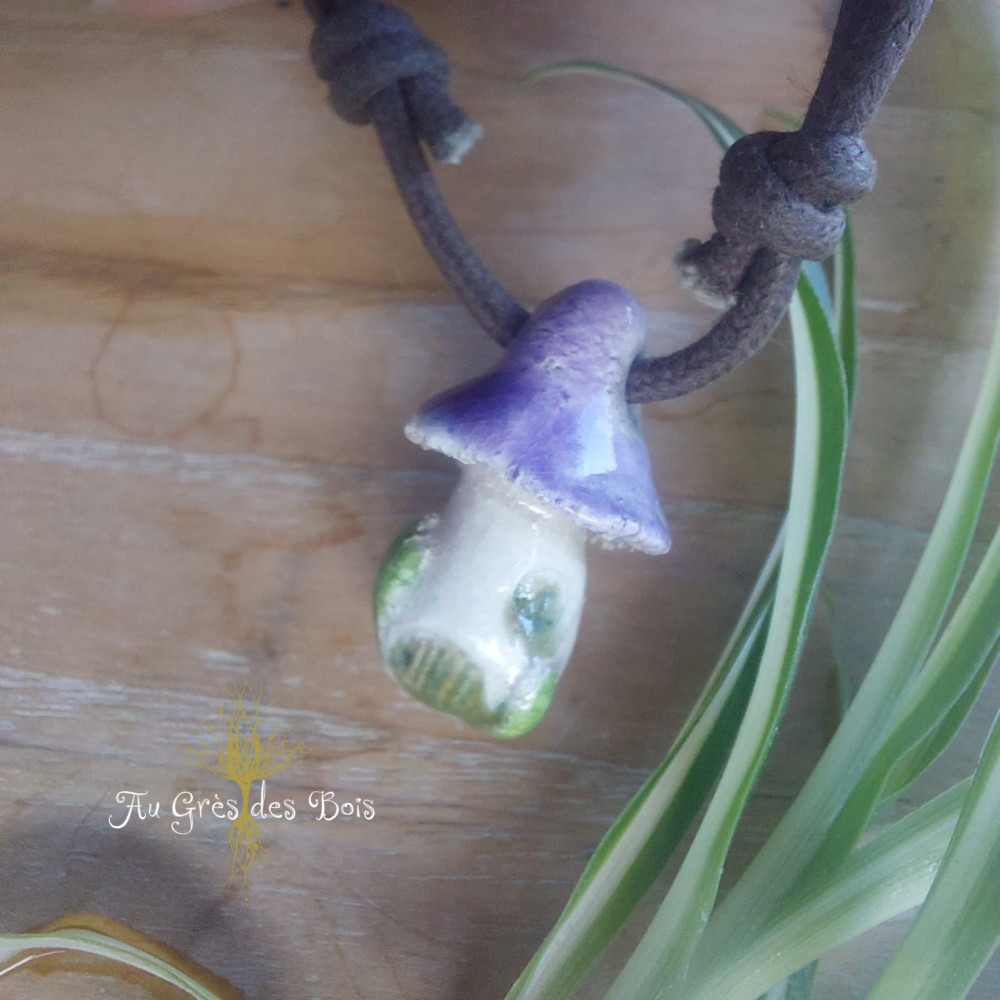 Pendentif modelé en grès cuit façon raku avec enfumage. Il a été créé grâce au 4 éléments : Terre*Air*Feu*Eau